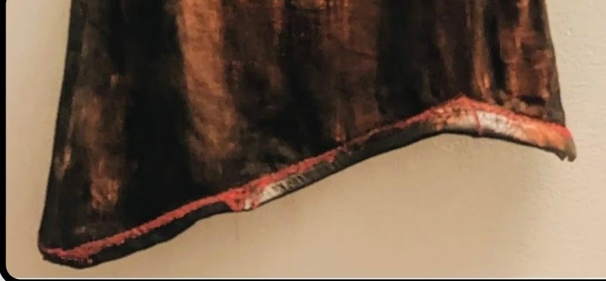 The fabric has a distressed, textured finish with dark brown and black undertones, giving it an aged, organic look.