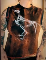 hand-painted bird skeleton on the front with striking white and gray tones.